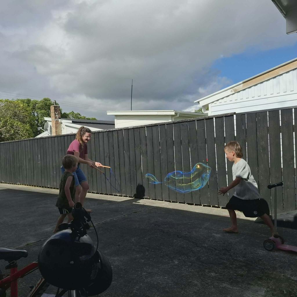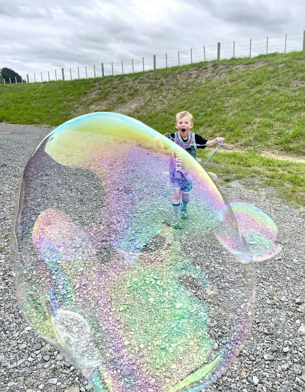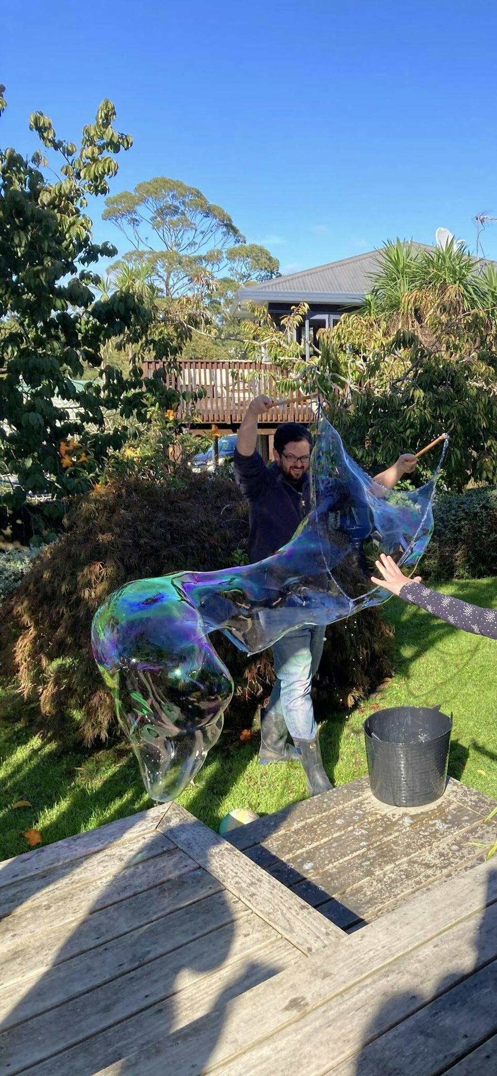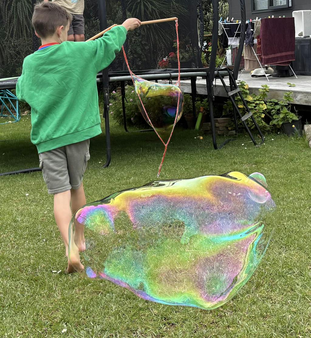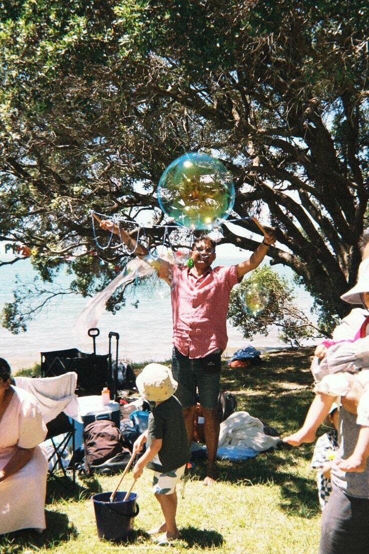 The giant bubbles from Tinka was the highlight of our one-year-old’s birthday party at a West Auckland beach. It was a spectacle that delighted children and adults alike.