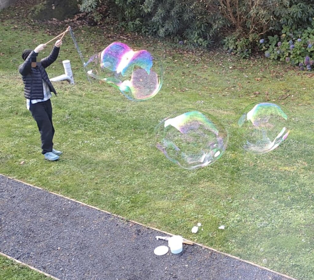 My inner child just loves this, 71 y/o and I still love to play with bubbles, I'm slowly convincing friends to join me, they're getting better at not caring what others think.